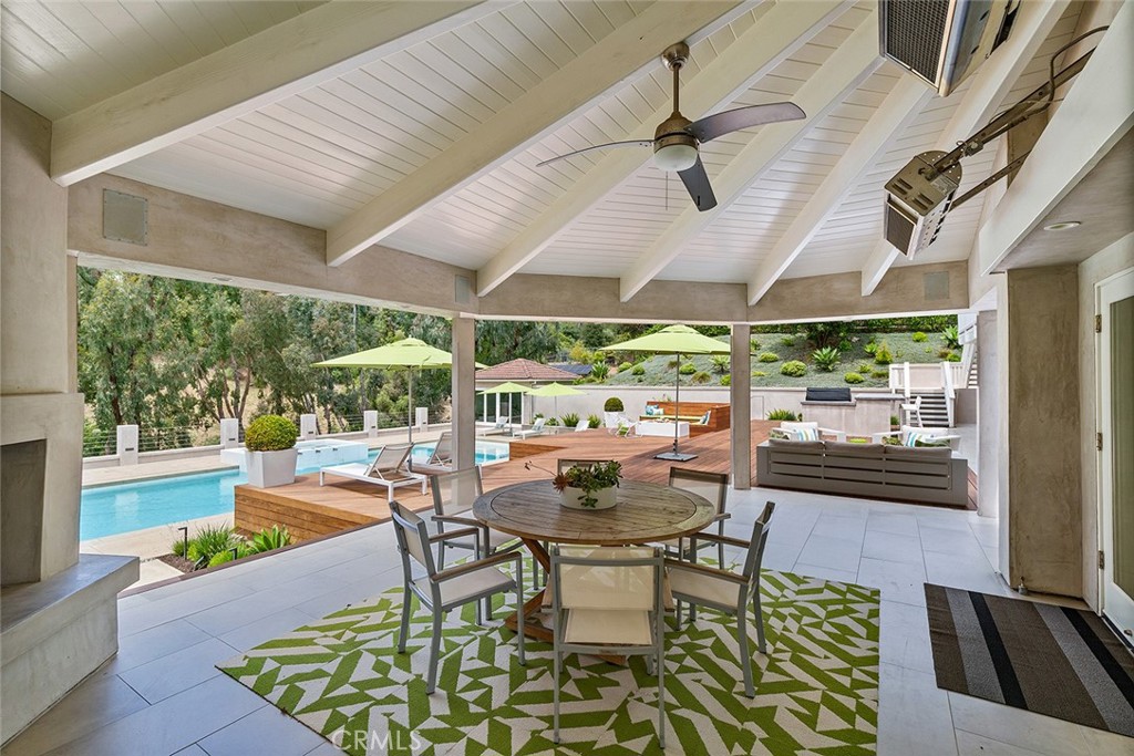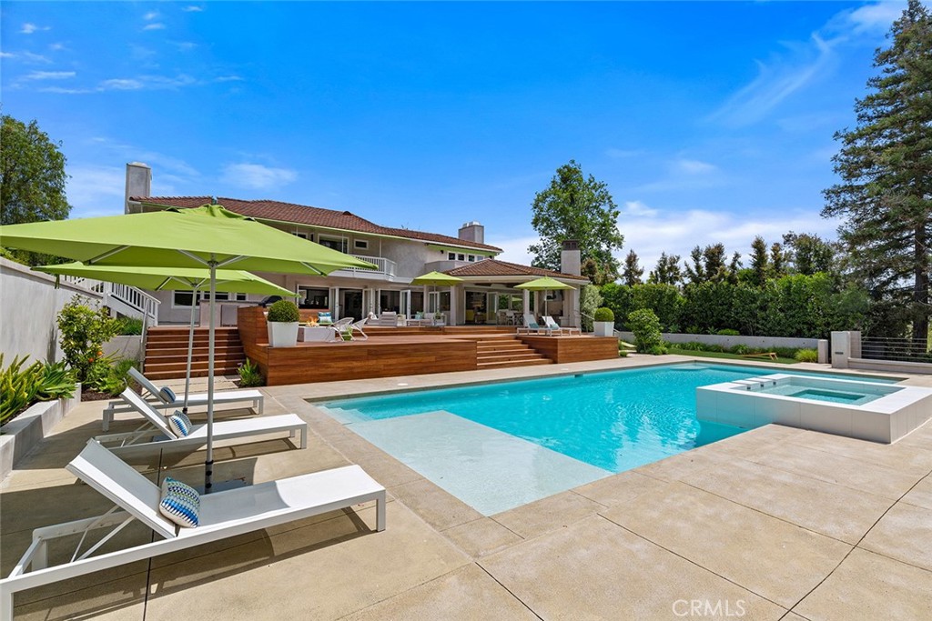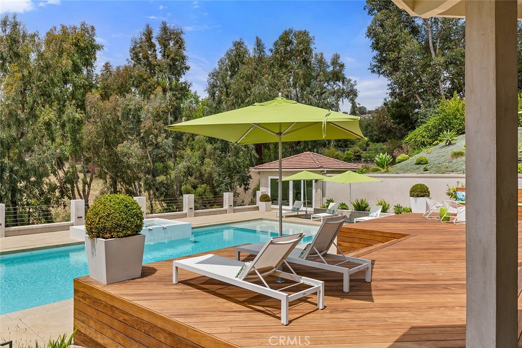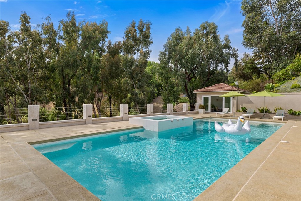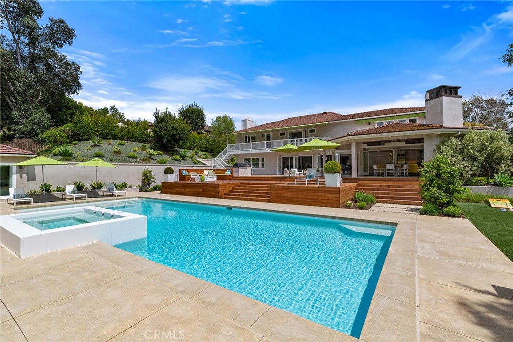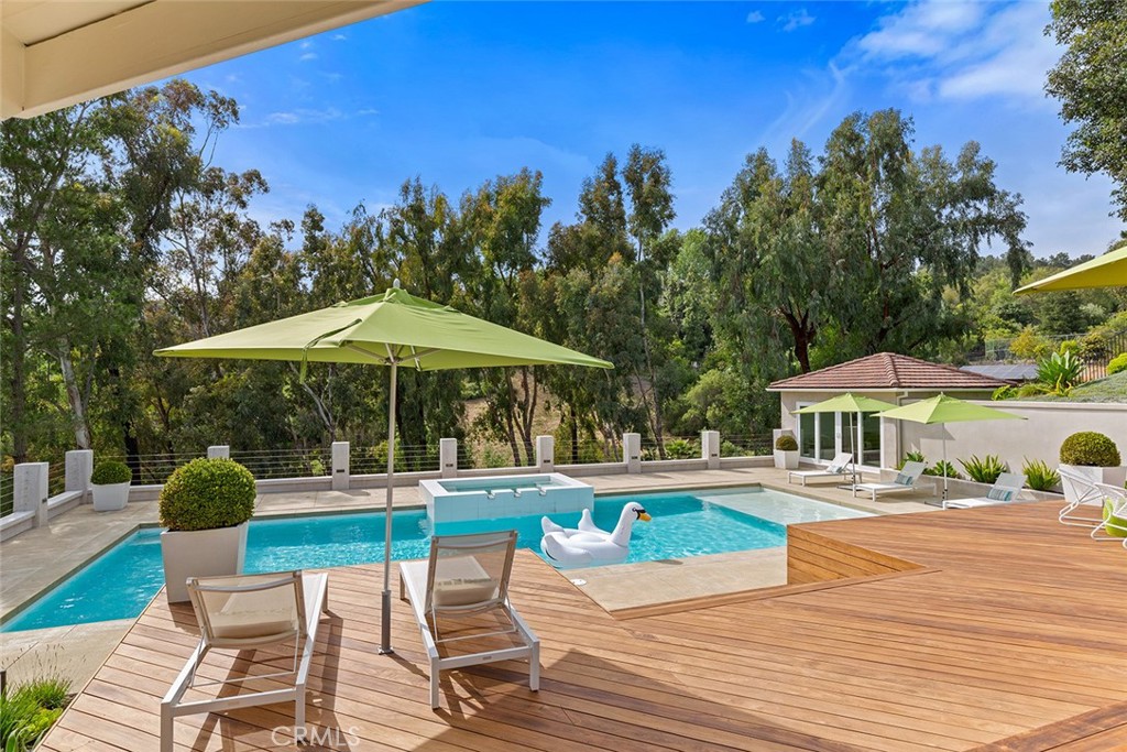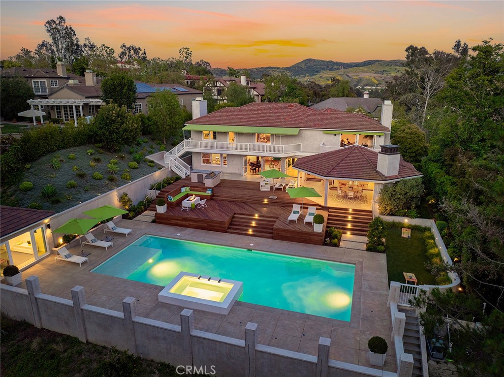 Welcome to 30982 Steeplechase Drive in the prestigious Hunt Club community of San Juan Capistrano. This California mid-century modern property offers an exquisite blend of indoor and outdoor living, designed with impeccable attention to detail. The home features an open concept floor plan, seamlessly connecting living spaces. High end finishes throughout create an elegant and comfortable ambiance. A wall of side by side doors seamlessly integrate indoor and outdoor spaces, creating a breathtaking view of the pool and deck upon entering the front door. The whole home enjoys natural light from well appointed windows and doors. The chef's kitchen with Italian Carrera marble counters, a large island, and professional-grade appliances enhance the culinary experience to include a top-of-the-line six burner Wolf range with double oven, two Sub-Zero refrigerators and two Miele dishwashers. The home boasts five en-suite bedrooms, including one on the main level ample in size which could serve as a separate guest quarters with its own exterior entrance. The oversized primary suite is a sanctuary for unparalleled comfort with a private balcony, an expansive seating area, and walk-in closet. The primary bathroom with heated tile floors, dual sinks and stand alone tub is done with functionality and sophistication. There are three fireplaces in the home, one in the living room, the primary bedroom and the outdoor dining area. The backyard has been transformed into an entertainer's dream with its own pool house, a sparkling pool with Baja Ledge and a large spa. Enjoy alfresco dining, gatherings by the fire pit and meals cooked at the modernized BBQ station. Additional amenities include a separate office with built in cabinetry, two outdoor BBQs, a butler's pantry and large laundry room with two Electrolux washers and dryers, surround sound stereo system, water filtration system and alarm system throughout the house. Just minutes from Dana Point Harbor, charming shops, five-star resorts, pristine beaches, and top-rated schools, this home epitomizes the best of Southern California living. The Hunt Club is a gated, equestrian community with multiple horse riding trails. This residence presents an incredible opportunity for discerning buyers seeking an extraordinary property in a great neighborhood.