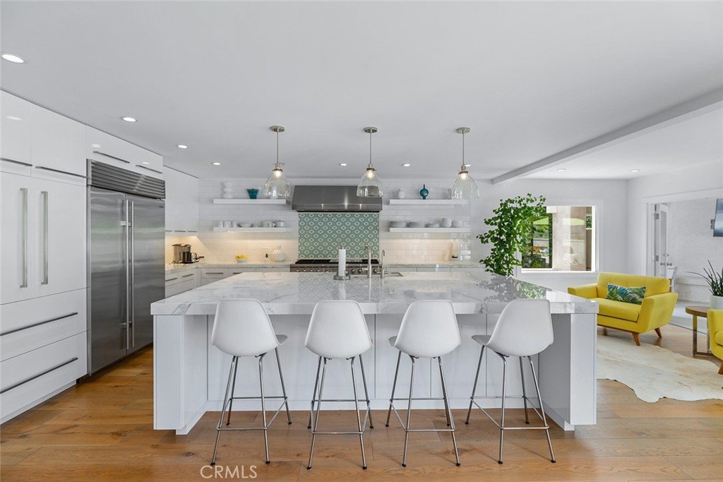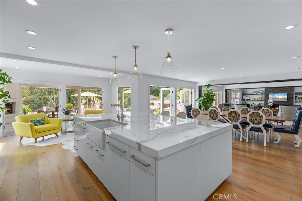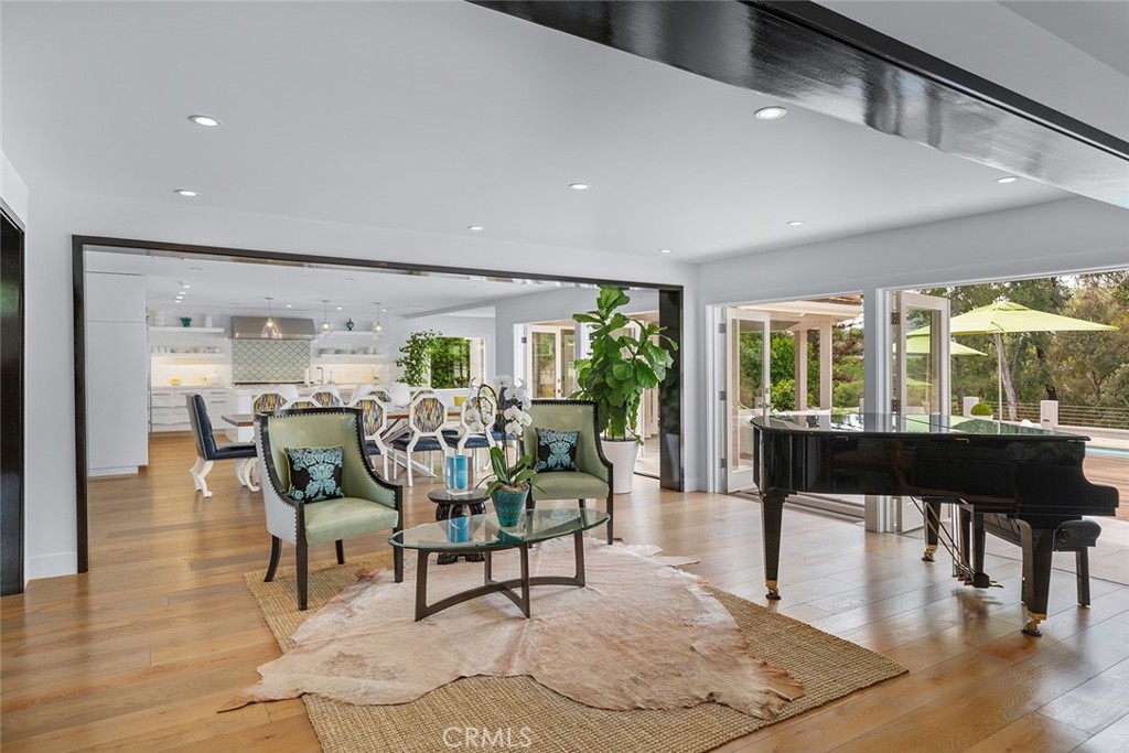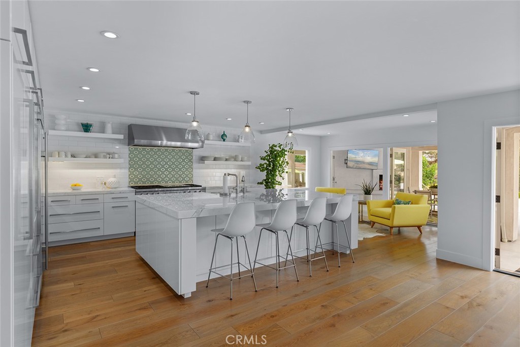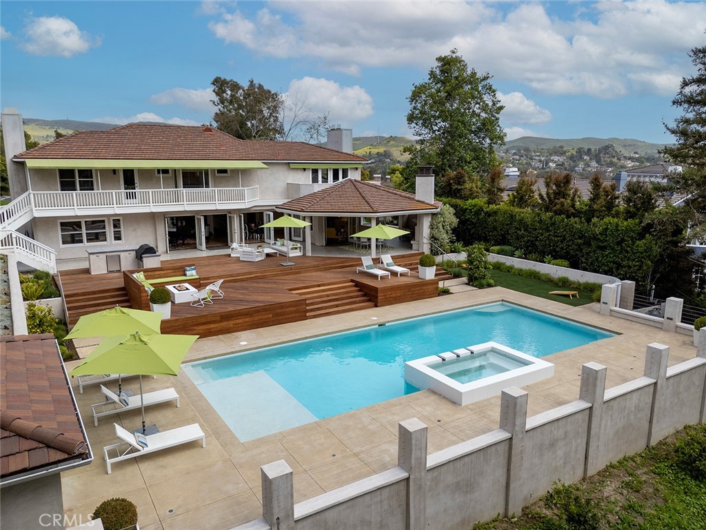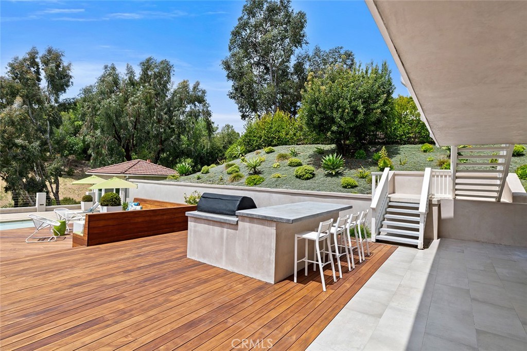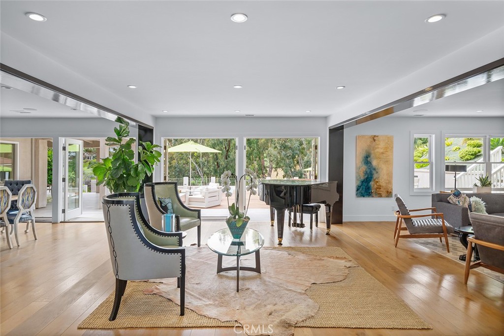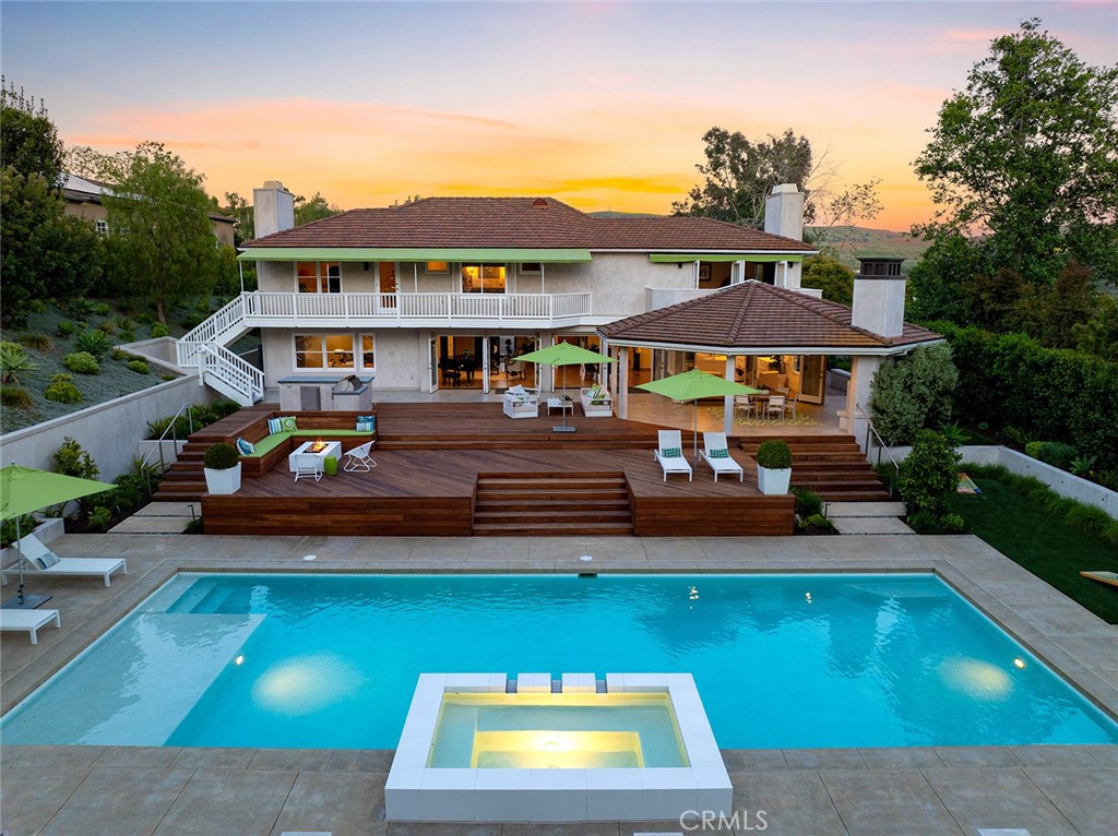 Welcome to 30982 Steeplechase Drive in the prestigious Hunt Club community of San Juan Capistrano. This California mid-century modern property offers an exquisite blend of indoor and outdoor living, designed with impeccable attention to detail. The home features an open concept floor plan, seamlessly connecting living spaces. High end finishes throughout create an elegant and comfortable ambiance. A wall of side by side doors seamlessly integrate indoor and outdoor spaces, creating a breathtaking view of the pool and deck upon entering the front door. The whole home enjoys natural light from well appointed windows and doors. The chef's kitchen with Italian Carrera marble counters, a large island, and professional-grade appliances enhance the culinary experience to include a top-of-the-line six burner Wolf range with double oven, two Sub-Zero refrigerators and two Miele dishwashers. The home boasts five en-suite bedrooms, including one on the main level ample in size which could serve as a separate guest quarters with its own exterior entrance. The oversized primary suite is a sanctuary for unparalleled comfort with a private balcony, an expansive seating area, and walk-in closet. The primary bathroom with heated tile floors, dual sinks and stand alone tub is done with functionality and sophistication. There are three fireplaces in the home, one in the living room, the primary bedroom and the outdoor dining area. The backyard has been transformed into an entertainer's dream with its own pool house, a sparkling pool with Baja Ledge and a large spa. Enjoy alfresco dining, gatherings by the fire pit and meals cooked at the modernized BBQ station. Additional amenities include a separate office with built in cabinetry, two outdoor BBQs, a butler's pantry and large laundry room with two Electrolux washers and dryers, surround sound stereo system, water filtration system and alarm system throughout the house. Just minutes from Dana Point Harbor, charming shops, five-star resorts, pristine beaches, and top-rated schools, this home epitomizes the best of Southern California living. The Hunt Club is a gated, equestrian community with multiple horse riding trails. This residence presents an incredible opportunity for discerning buyers seeking an extraordinary property in a great neighborhood.