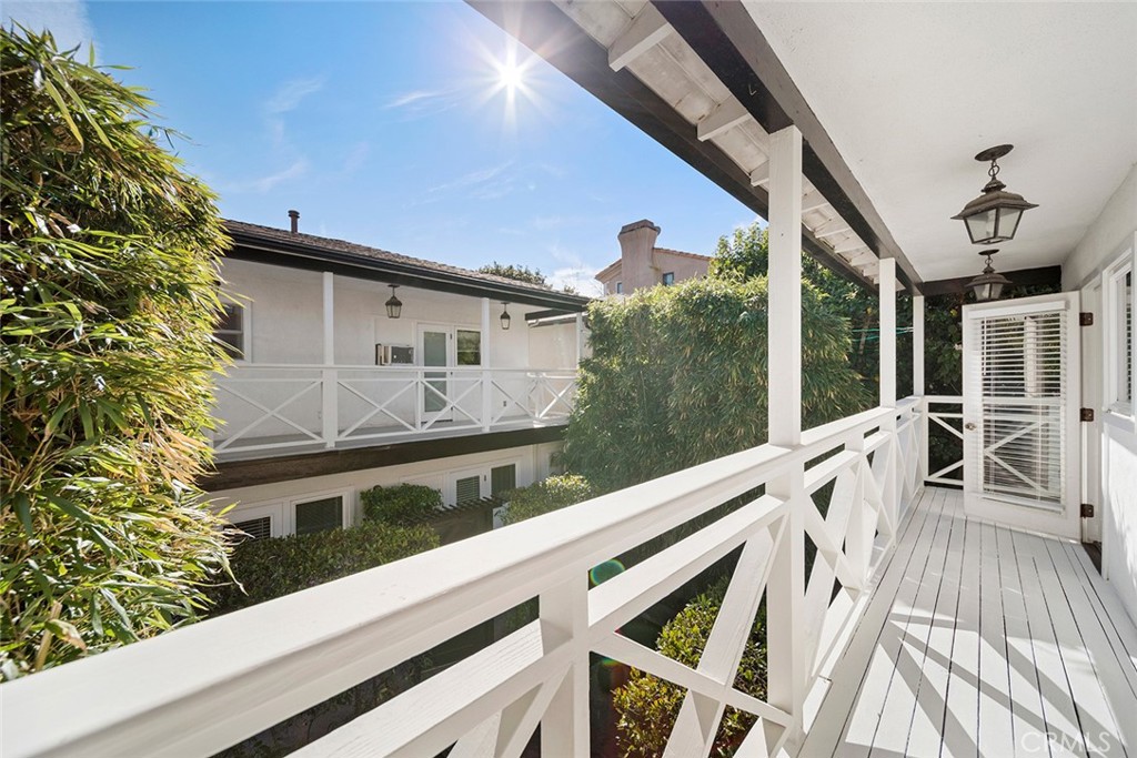 Back unit: Coveted, quiet South-of-PCH location just two blocks from the Goldenrod Pedestrian Bridge. Refined plantation-style stand-alone residence showcasing thoughtfully reimagined 1960s architecture. Flexible floor plan offers three bedrooms and three bathrooms, including a generous upstairs primary suite with wrap-around deck, ideal as a den or family room. Vaulted, beamed ceilings grace all bedrooms, complemented by a curated mix of wood and cement flooring. Seamless indoor-outdoor living throughout, with all bedrooms and principal rooms opening to decks, patios, and landscaped garden spaces. Exceptionally private garden retreat with built-in koi pond. One-car covered carport and ample street parking. A distinctive, design-forward residence offering privacy, character, and timeless appeal.
