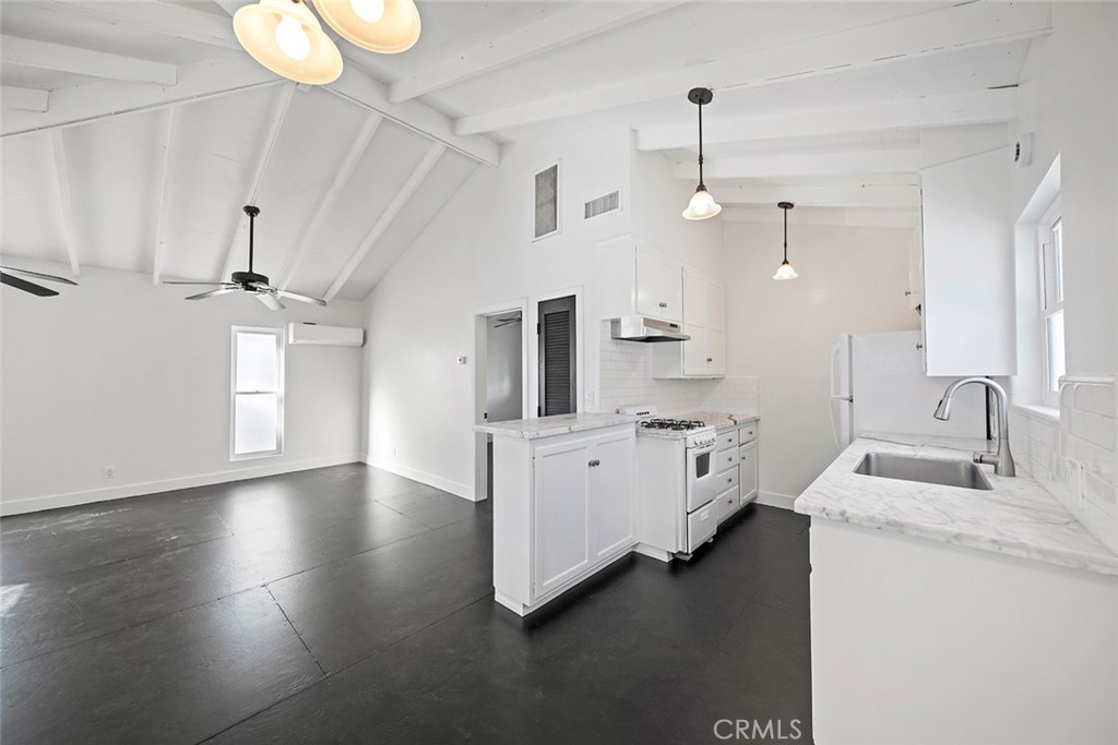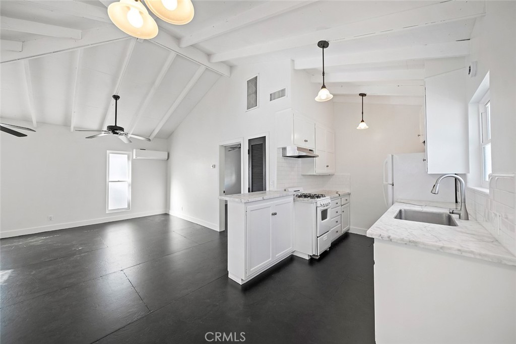 Tucked in a coveted, quiet enclave south of PCH, just two blocks from the Goldenrod Pedestrian Bridge, this chic, plantation-style stand-alone residence reimagines its 1960s architectural roots. A flexible floor plan offers three bedrooms, an office, and three bathrooms, with distinct upstairs and downstairs living and family rooms. Vaulted, beamed ceilings pair beautifully with a mix of wood and cement flooring. Every bedroom and public space opens directly to the outdoors, connecting seamlessly to decks, patios, and garden areas. A highly unique and private front garden features a built-in koi pond. Additional amenities include inside laundry, a one-car garage, and ample street parking. An unusual, soulful home with undeniable style and presence.